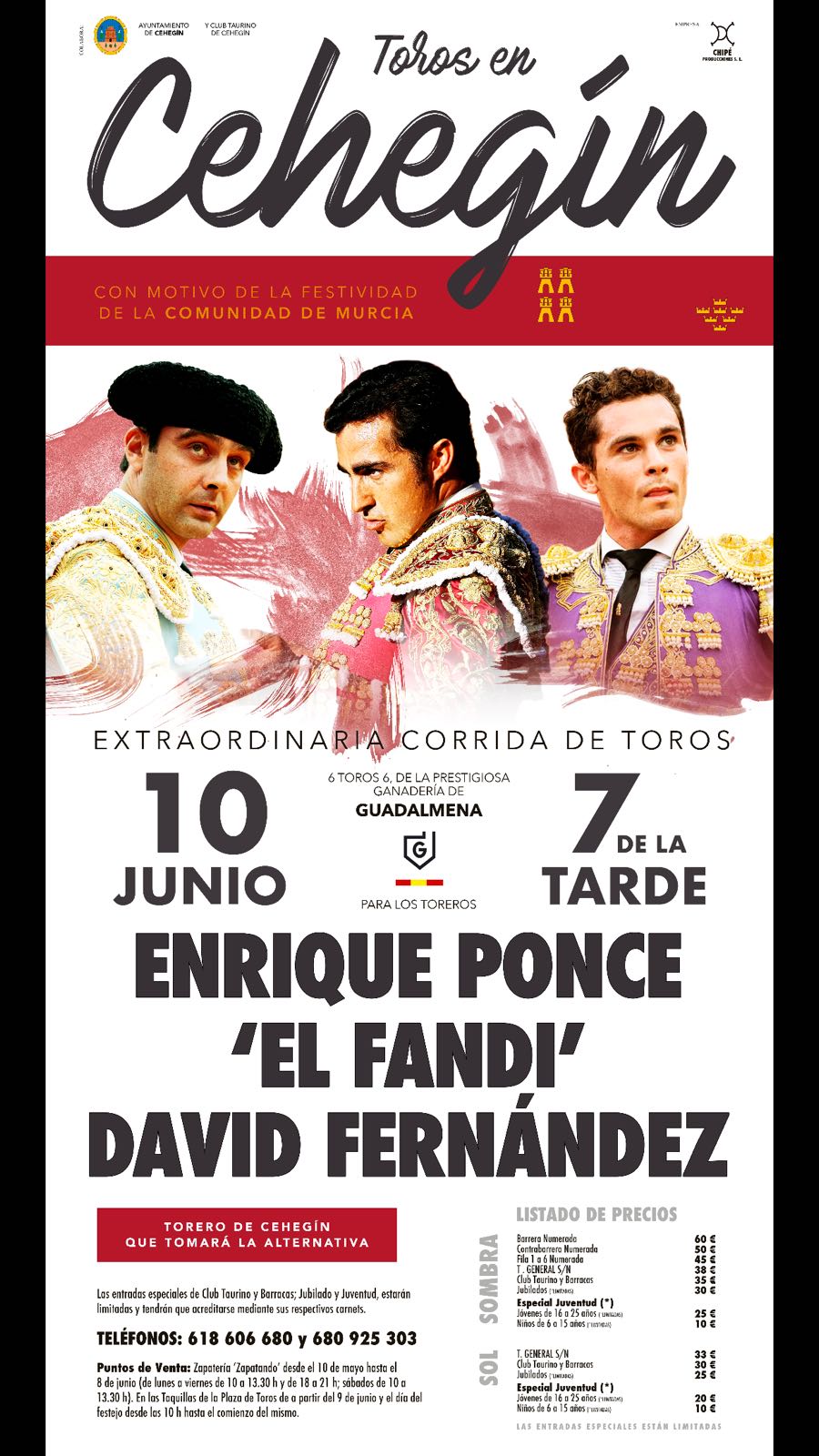 En el festejo taurino, que se celebra con motivo de la festividad del Día de la Región de Murcia, se lidiarán toros de la ganadería de Guadalmena y dará comienzo a las 19.00 horas.